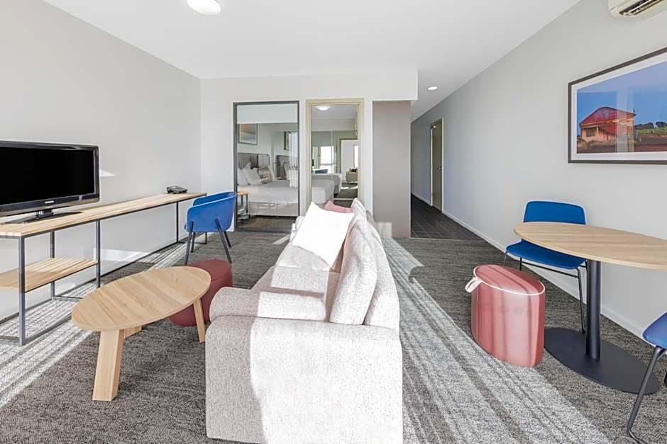 This air-conditioned apartment features a private balcony, full kitchen and laundry facilities and a separate living room with flat-screen cable TV and a DVD player.